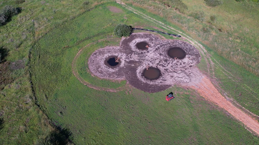 It’s a sweltering summer day near Littlerock. And in spite of the heat, the ordinarily serene Blooms Preserve is bustling with Capitol Land Trust (CLT) staff, biologists, volunteers, and earth-moving equipment. The people and machinery are here for one reason: to improve wetland habitat for a state endangered species called the Oregon spotted frog. This project involves a series of dug pond clusters that will hold water year-round, even on hot days like this after months of minimal rainfall.