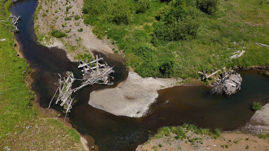 - Multiple large woody structures were installed along Stillman Creek to increase habitat diversity. Photo by Mike Melton.