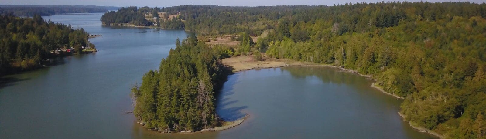 The 56-acre property hosts many different habitat types, including 1,300 feet of shoreline, two pocket estuaries, wetlands, and mature forest. The pocket estuaries, fed by streams that seep from the hillside, are frequented by Kingfishers and provide important salmon habitat. The upland parts of the property are home to stands of Western red cedar, Douglas-fir, big-leaf maple and red alder, and old orchard trees remain between the forest and an agricultural field that is being restored.