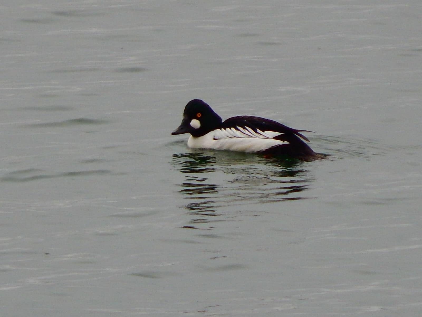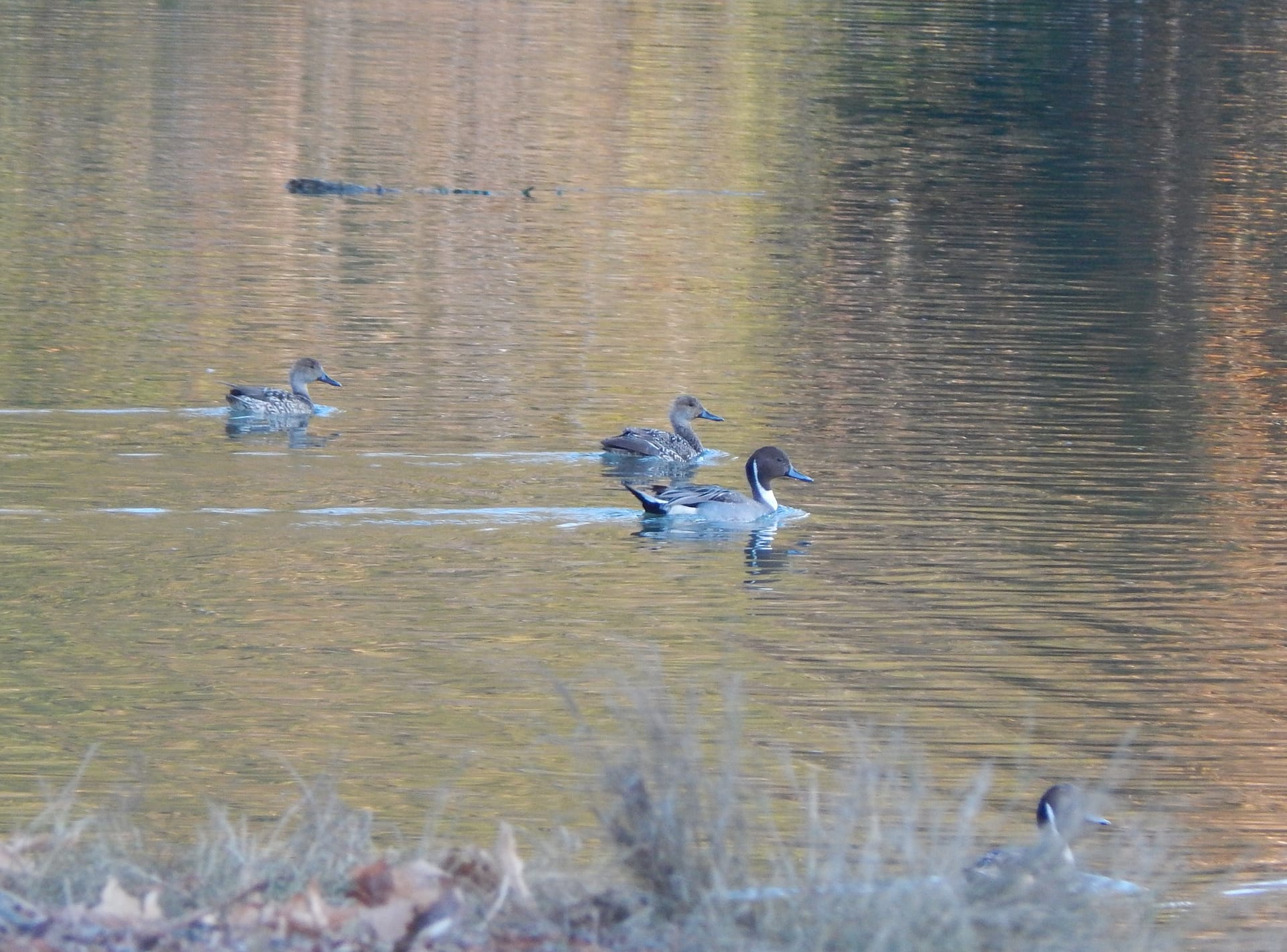 In the fall, migrants like the Northern shrike and numerous species of waterfowl like the surf scoter, Northern pintail, and common goldeneye can be found resting and feeding in our area on their migration from the northern parts of Canada.