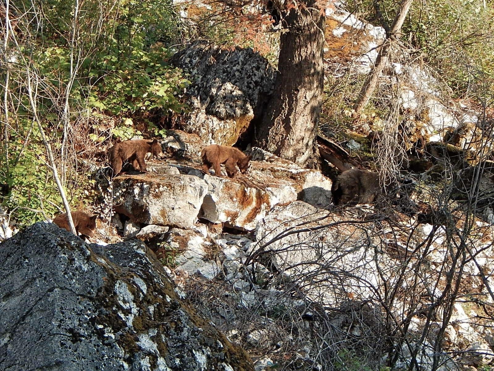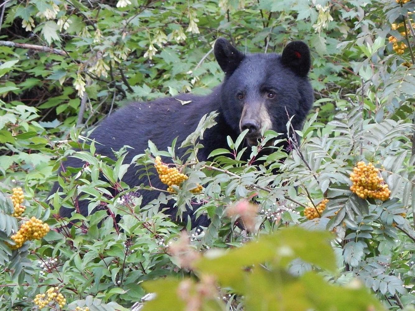 The American black bear uses a similar winter survival strategy, although their body temperature does not drop as drastically as other mammals like the hoary marmot. By maintaining a relatively warm body temperature, black bears can hibernate in their dens for months without eating, drinking, urinating or defecating! Amazingly, it is during these months when a mother black bear will give birth to two or three blind, helpless cubs and nurse them in the den until spring.