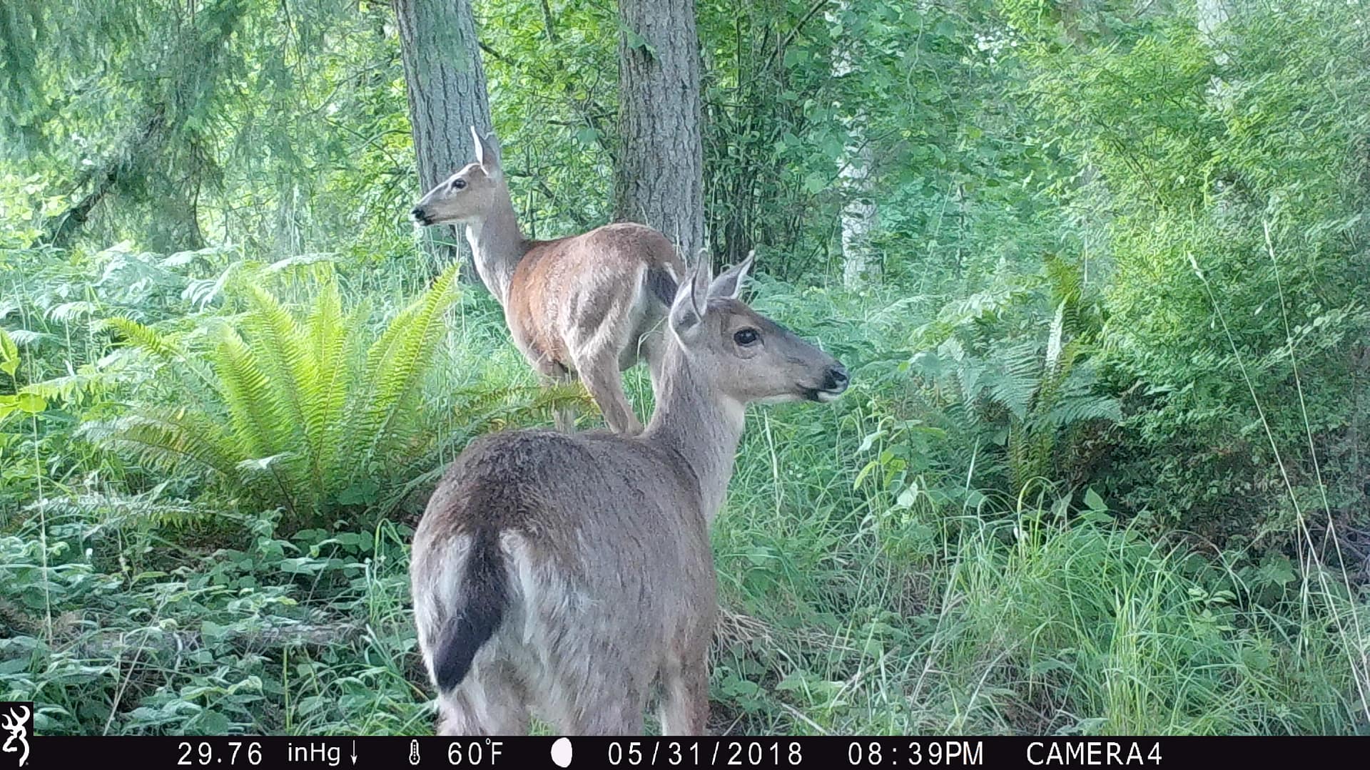 A common sight in the Pacific Northwest year-round are black-tailed deer. Black-tailed deer have developed the ability to grow a thick winter coat. Their coat consists of thick, long hairs called guard hairs that protect the short, thick, and often wavy hairs of the undercoat, providing exceptional insulation. They even have oil glands near each hair canal that waterproofs their fur!