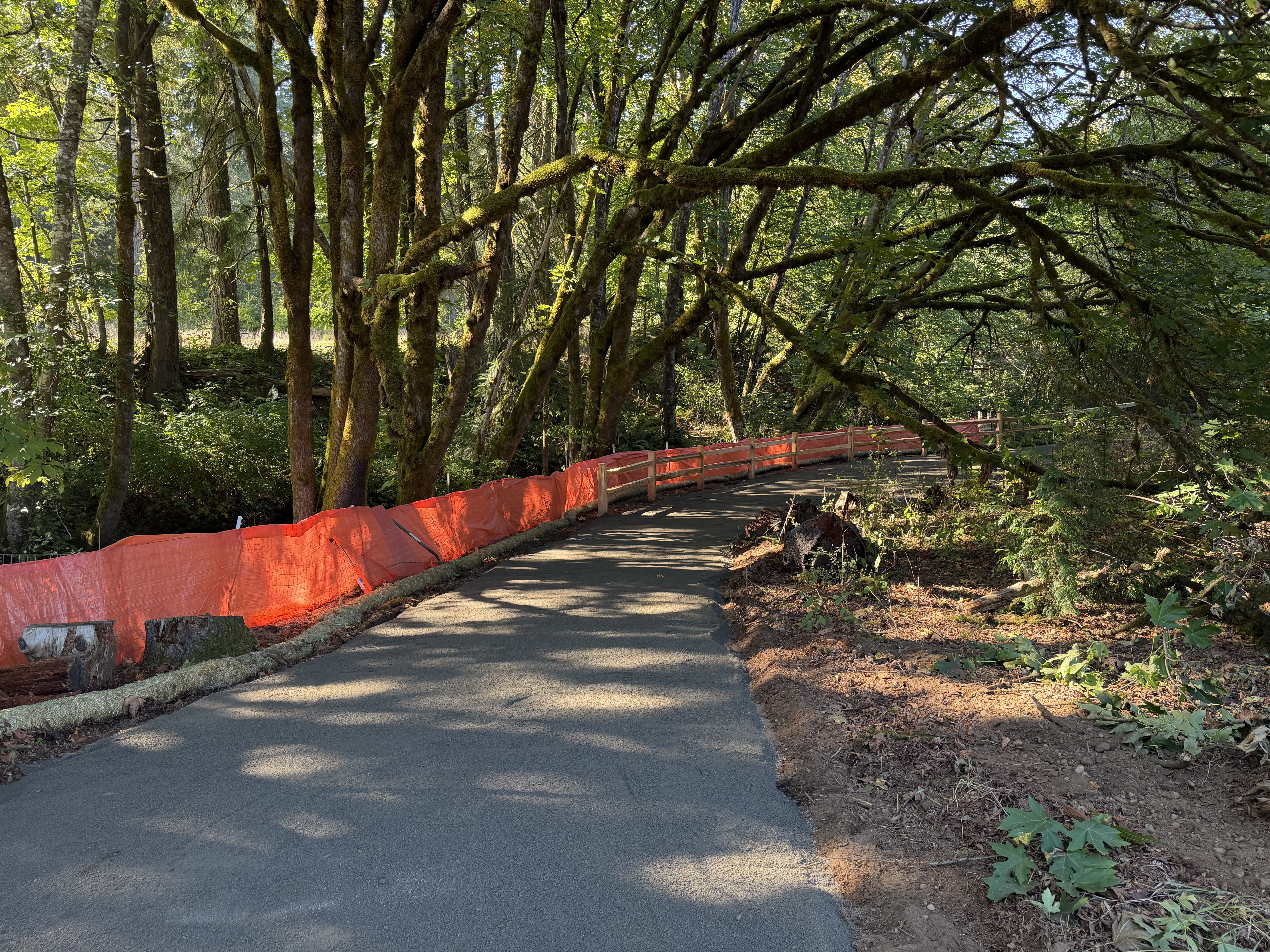 - Work has begun on regrading and resurfacing the trail from the parking lot to the bridge and along Johns Creek to improve accessibility