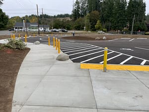- A redesigned entrance and parking area, including a dedicated van accessible space and room for two full-sized school buses, with bollards and concrete sidewalks for safer access