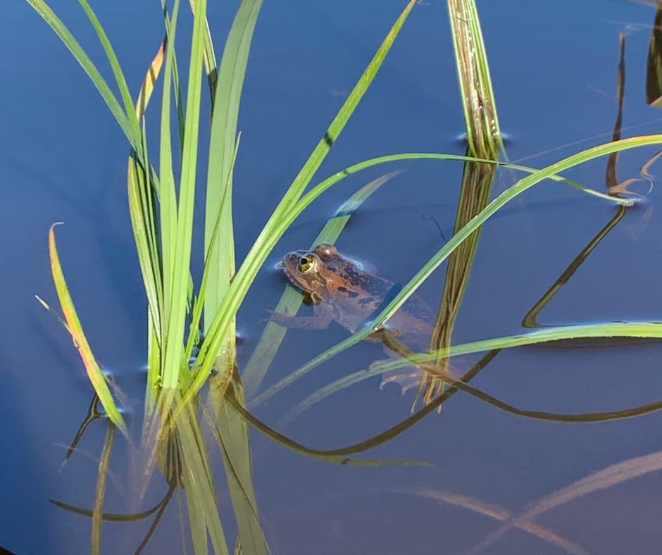 Even still, the population of Oregon spotted frogs at Blooms Preserve persists. And, one has been “spotted” floating on the new vegetation.