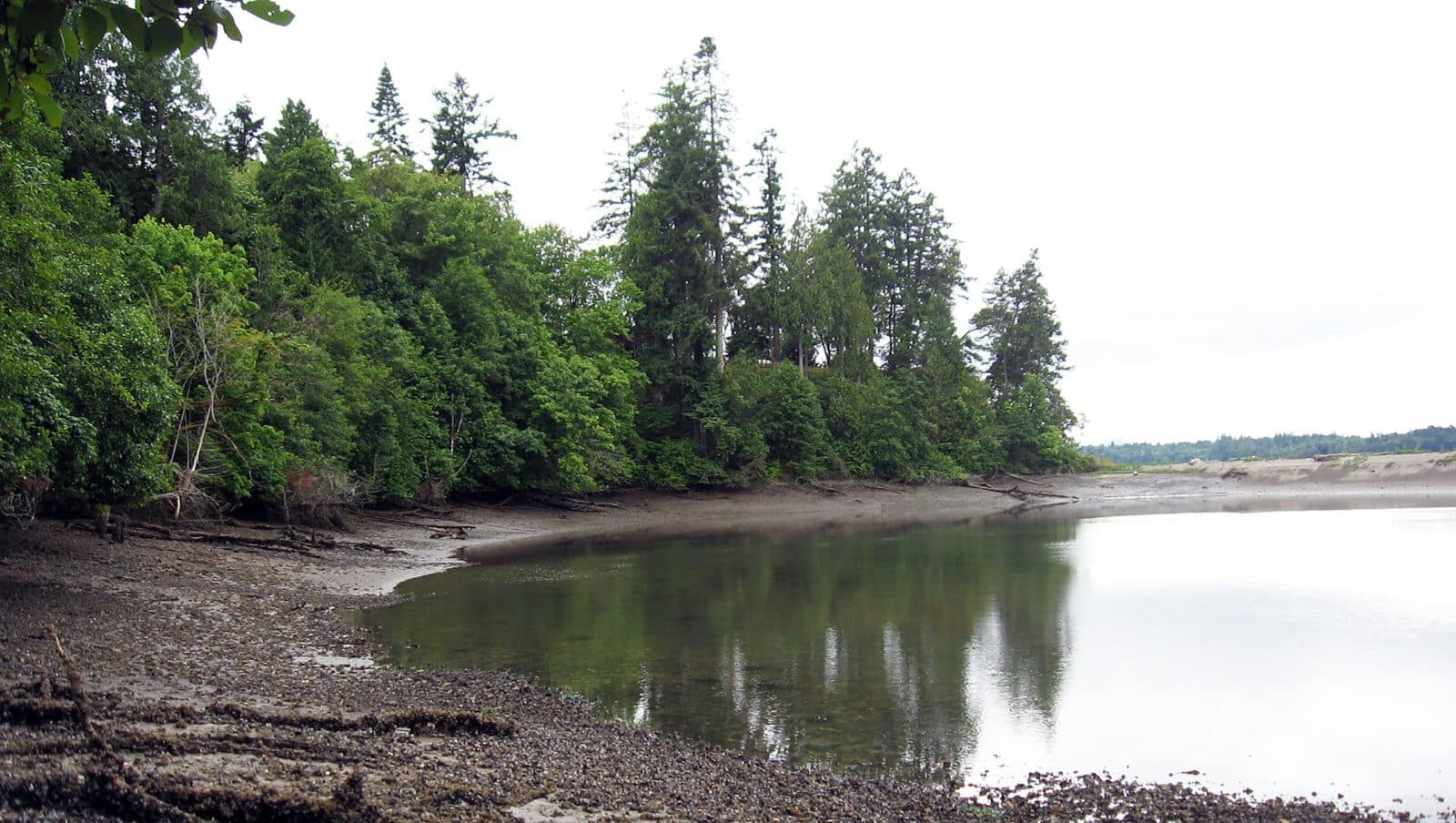 The tide flows into Gull Harbor like a slowly drawn breath. Periodic splashes announce a kingfisher’s plunges from its hunting perch, and the awkward calls of a great blue heron echo in the calm. On clay bluffs above the harbor the steady rustle of maple leaves and cedar boughs is a backdrop for other sounds: the ringing call of the Swainson’s thrush, the rat-a-tat of a pileated woodpecker’s excavation, the gentle chatter of chestnut-backed chickadees feeding their young.