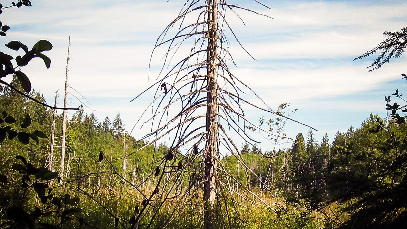 Kevin Ekar and his partner, Bob Olson, have donated the title to a seven acre shrub-scrub wetland located at the northern end of Overhulse Road near The Evergreen State College. The parcel runs for 530′ along the road and extends about 600′ back. Beavers have backed up waters into a formerly forested area killing the trees and leaving a multitude of snags now enjoyed by woodpeckers and perched raptors.