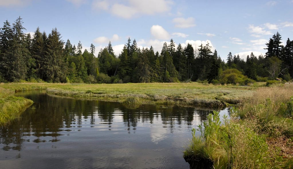 From about 1900, Goldsborough Creek, which flows through downtown Shelton, was completely blocked for salmon passage due to the Goldsborough Dam. In 2001, the dam was removed, opening up 25+ miles of upstream cool, clean water and spawning beds to salmon. Since then, Capitol Land Trust has protected 10 miles of shoreline along Goldsborough Creek and its tributaries, along with key associated wetlands. These wetlands have been called a “coho factory” due to their incredibly high-quality conditions that provide food and protection for young coho salmon before they migrate out to sea.