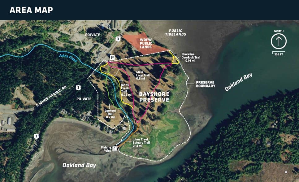 Bayshore is undergoing improvements July 7, 2025, through October 2025. During construction visitors should expect temporary closures to the main parking lot, bathroom, and some trail sections. Alternative parking is available via WDFW’s Oakland Bay Recreation Area (3990 WA-3, Discover Pass required). We appreciate your patience. See project updates and what’s open.