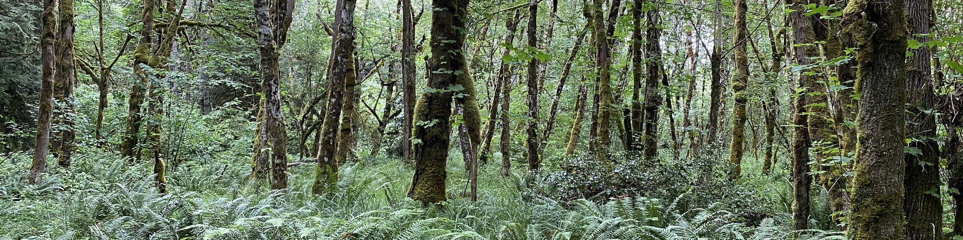 - Native shrubs like salal, Oregon grape, evergreen huckleberry, and ferns make up the understory