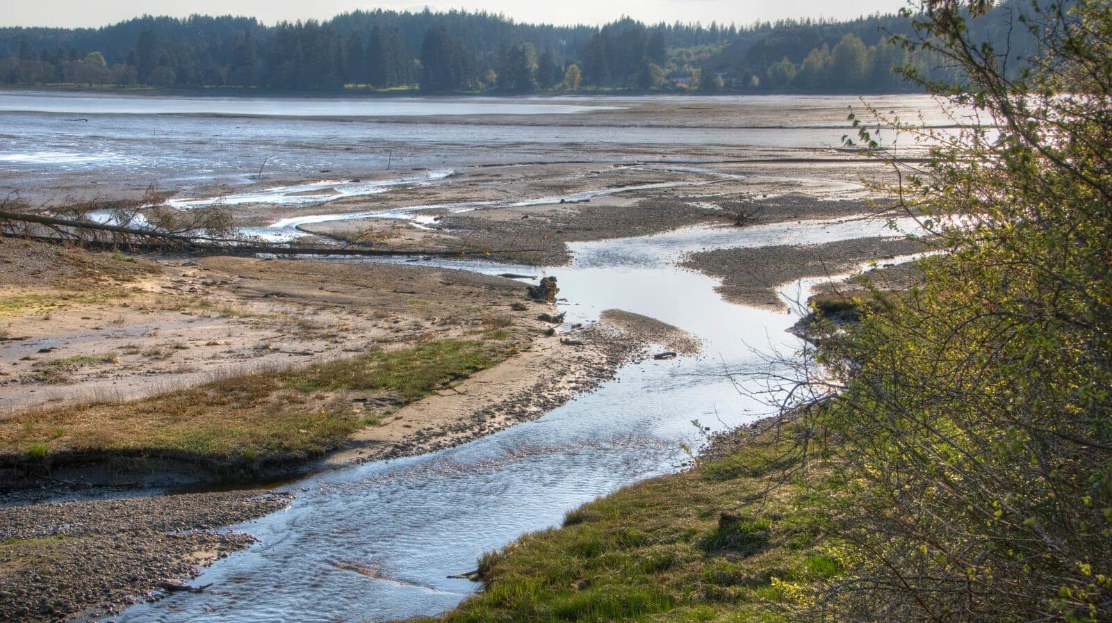 In one of the far corners of Puget Sound, a creek flows cold and the color of tea.It brings a breath of cool air from the forest to tideflats shimmering in late spring heat. This estuary, where the fresh water of Malaney Creek mixes with Oakland Bay’s salt water, is the centerpiece of a new conservation acquisition northeast of Shelton. The acquisition protects three quarters of a mile of the creek, forested estuary, eighty acres of forest and meadow, and two thousand feet of forested marine shoreline on Oakland Bay.