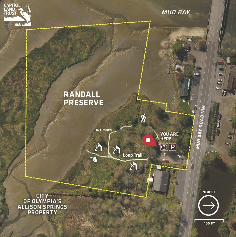 - At the southern end of Eld Inlet is Capitol Land Trust’s Randall Preserve which is 7 acres of land and tidelands adjacent to the City of Olympia’s aquifer, Allison Springs.