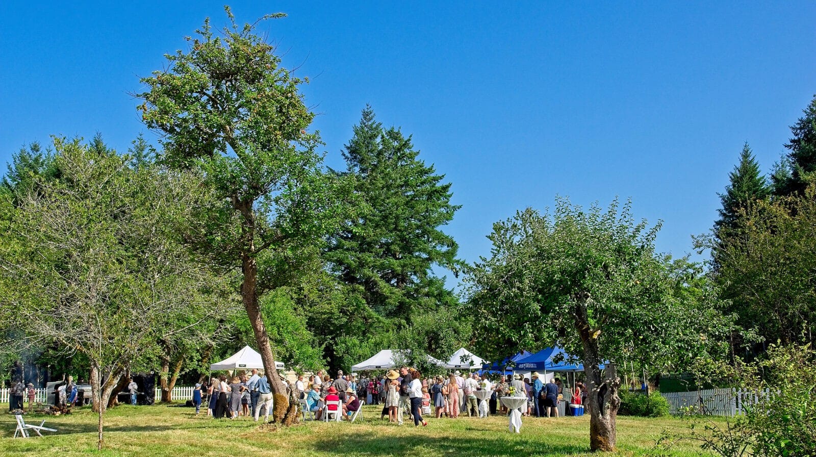 On an evening in the height of summer in the Pacific Northwest, you’ll stroll the lush grounds of Triple Creek Farm, with a view of the tide rolling in from Eld Inlet. Sip on a glass of wine or beer while enjoying quiet jazz by Quatro. You’ll sample hors d’oeuvres and grab a shucked oyster, or two, from Taylor Shellfish Farms.