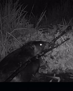 - Beaver dragging branches in the wetland.