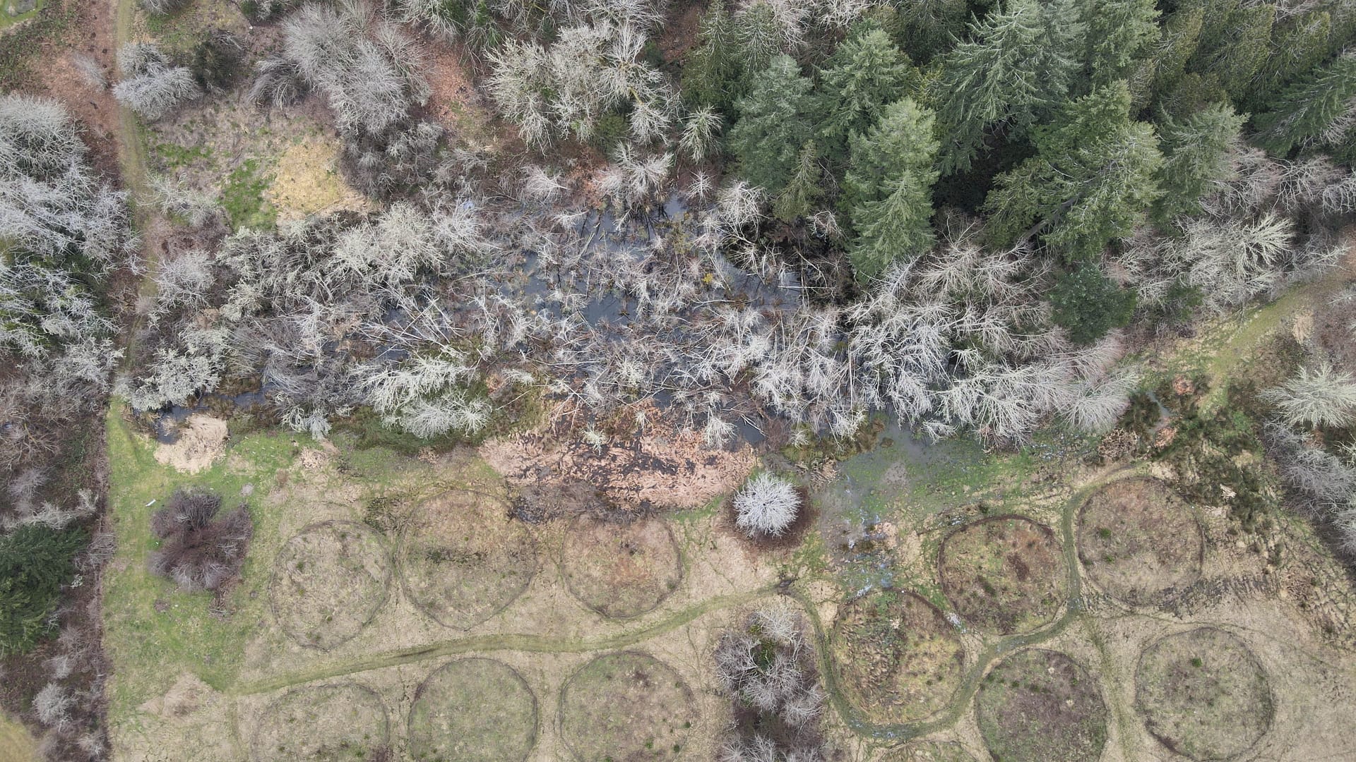 - Aerial view of a beaver-influenced wetland in winter, Mike Melton.
