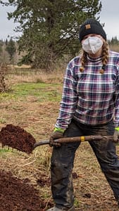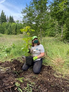 Over the past two years, Justine has been responsible for engaging the community in on-the-land stewardship work, which we call stewardship work parties. Stewardship work parties get things done where they are needed most, whether it be keeping trails open and safe or removing encroaching invasive vegetation from restoration sites. By mobilizing volunteers, we’re able to increase our capacity to steward conserved lands to improve fish and wildlife habitat and water quality in the South Puget Sound and Chehalis Basin watersheds. Justine worked with over 250 individuals the past two years, leading the charge to address environmental needs on over 45 acres of conserved land.