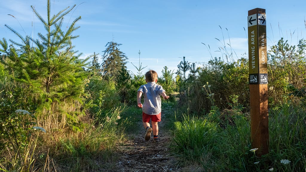 - Child running down the trail at Randall Preserve, Mary Birchem