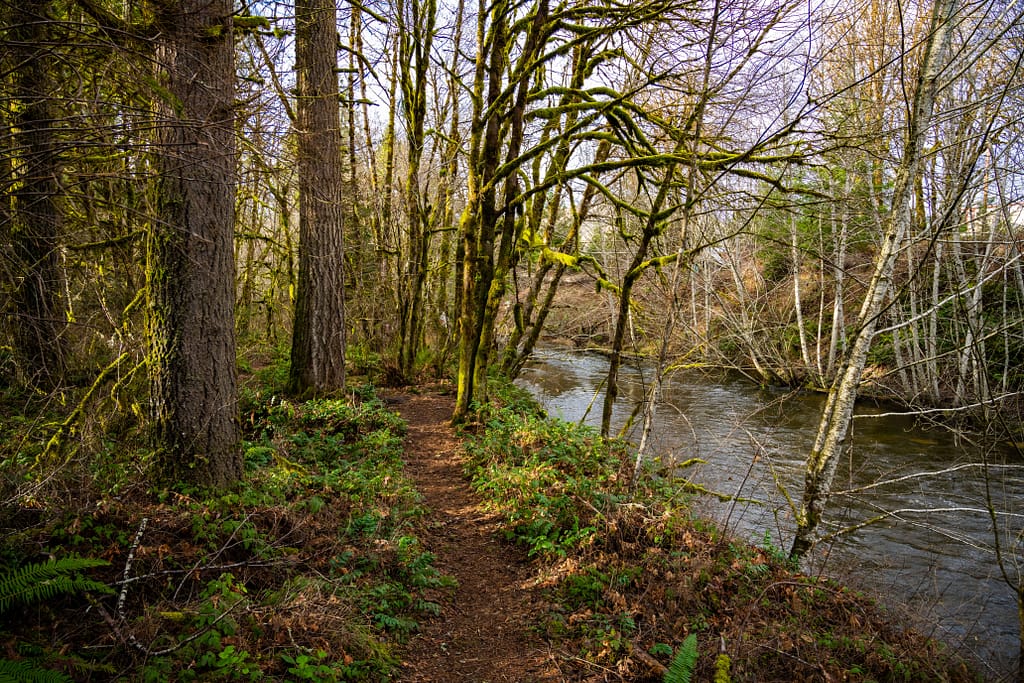 The half-mile loop trail meanders along Goldsborough Creek and through an upland forest. Take a break at one of the three benches built and installed by students from CHOICE High School.