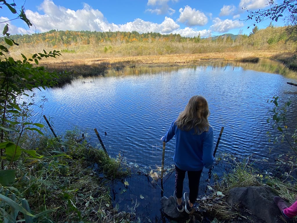 - Child overlooking a beaver pond at Darlin Creek Preserve, Mary Birchem