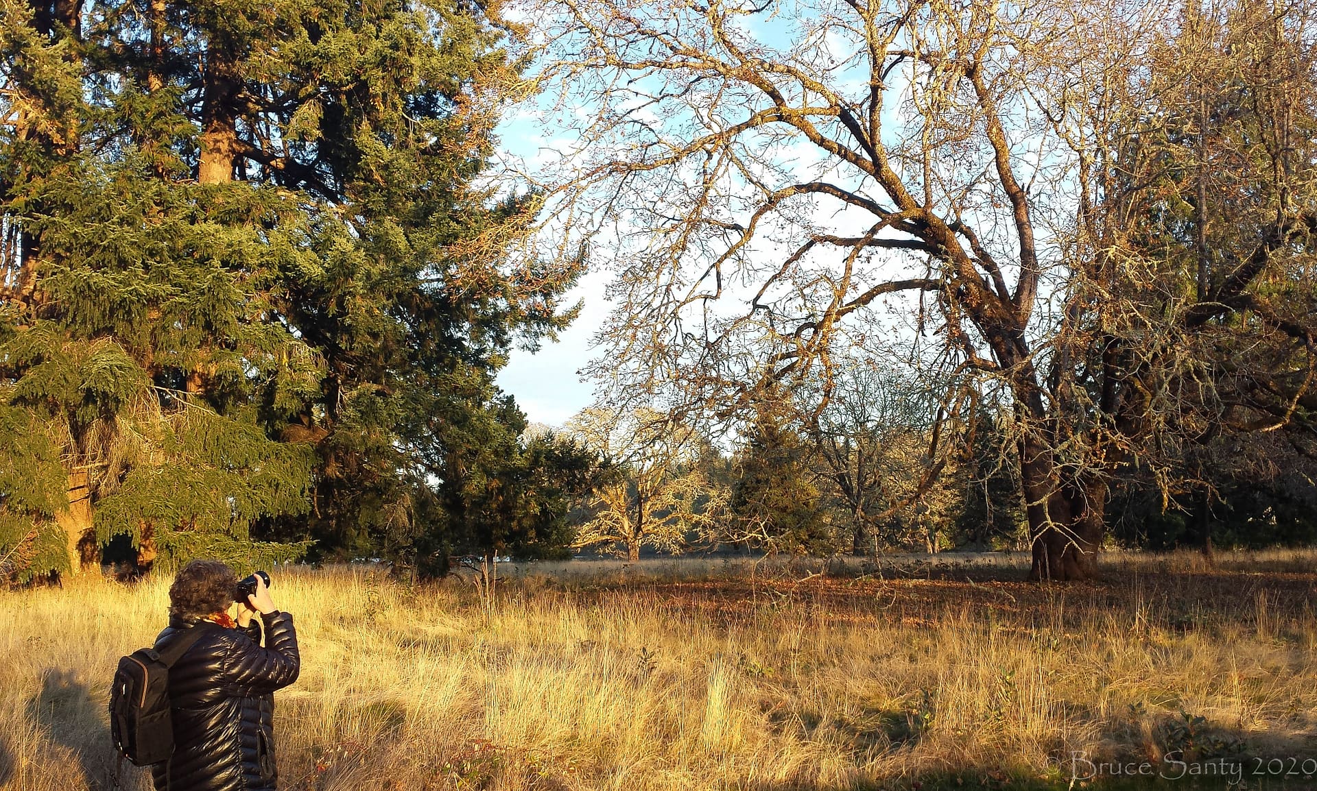 - Photographer taking a photo of a Garry oak tree, Bruce Santy