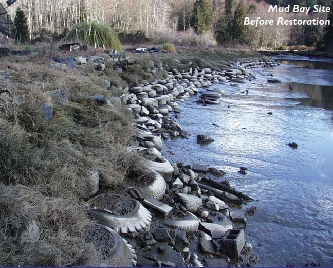 Many of Capitol Land Trust’s properties come to us in conditions where restoration action is necessary. Randall Preserve was donated to CLT in 2008 by Marjorie Randall; we were interested in this property because of the high-quality tidelands (the territory between the high and low water tide line) and salt marshes (ecosystem in the upper intertidal zone between land and open salt water or brackish water that is regularly flooded by the tides). These ecosystems provide habitat for many animals and marine species.