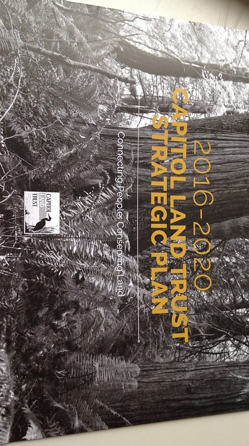 This month, after a year of work, the Board of Directors and staff, in consultation with selected stakeholders, finished Capitol Land Trust’s new 5-year strategic plan, for 2016 through 2020, which has three major goals. The plan developers identified several key strategies within each goal:
