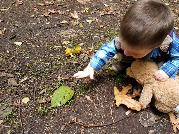 My son has no problem looking down to explore the forest floor at Capitol Land Trust’s future Inspiring Kids Preserve. Credit: Daron Williams