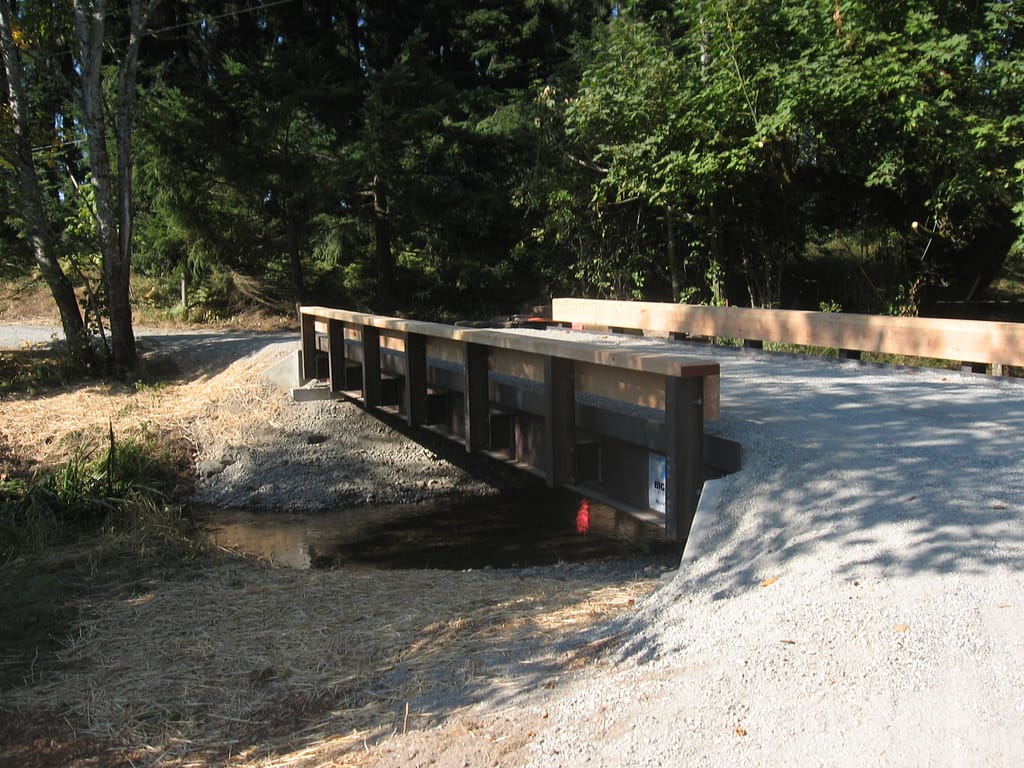 US Fish & Wildlife Service Landowner Incentive Program, the Salmon Recovery Funding Board, and a donation made by Shelly provided funding for the conservation easement and the replacement of a bridge with two failing culverts. The old culverts restricted fish passage on Spurgeon Creek and caused Shelly’s driveway to flood during storms. When the bridge was replaced in 2012, 5.2 miles of unimpeded spawning and rearing habitat for several species of anadromous fish, including steelhead, coho, Chinook, and coastal cutthroat trout, was opened in the Deschutes River watershed.