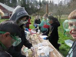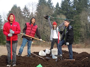 Shelly has been working with a variety of schools and environmental organizations to restore the riparian habitat at the farm for years. Washington Conservation Corps, South Sound GREEN, Thurston County Stream Team, Komachin Middle School, Boy Scout troops, CLT, and many others, have all contributed to restoration and water quality monitoring efforts.