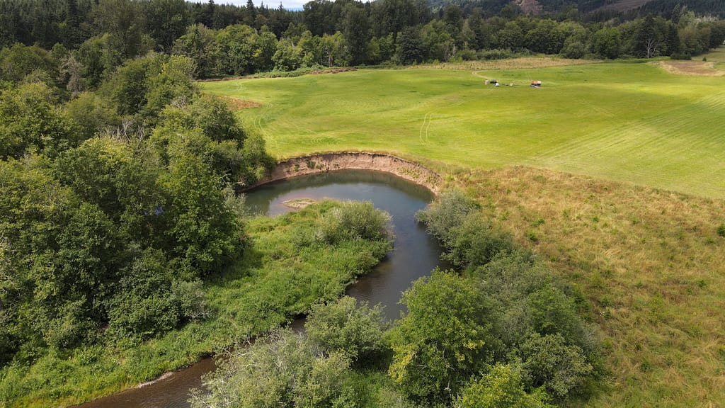 Next, the Muellers are partnering with Thurston Conservation District and the Washington Department of Fish and Wildlife to improve this stretch of the Skookumchuck River. The partnership will work together to install large woody debris, improve floodplain connectivity, and replace invasive riparian vegetation with native species.