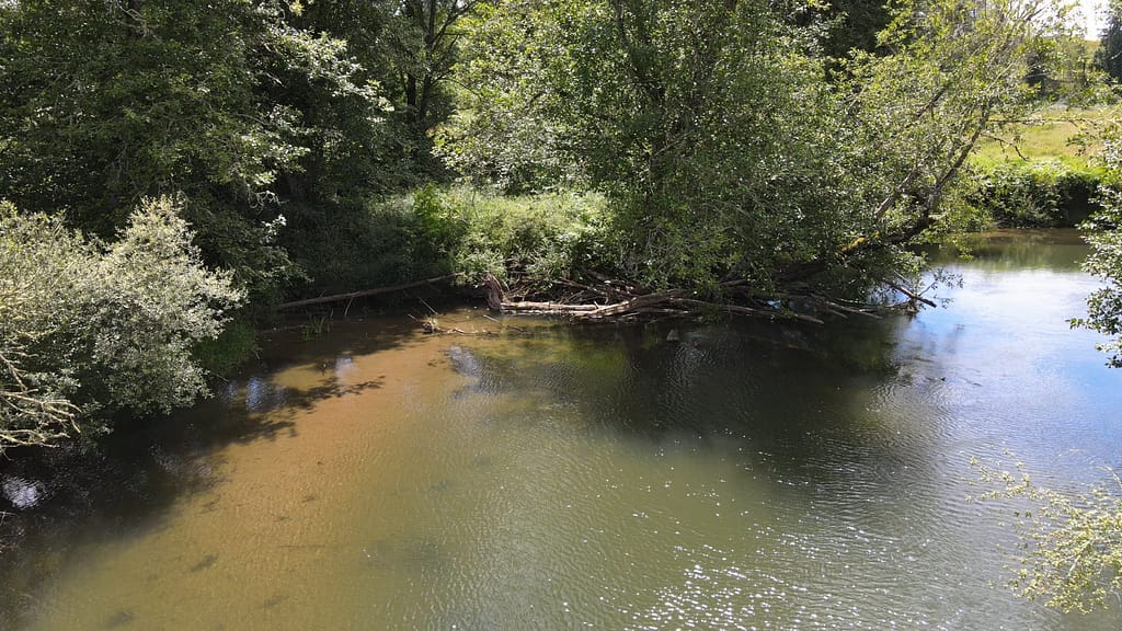 The land along this zig-zag is owned by Geoff and Lorna Mueller. The Muellers moved to Skookumchuck Valley in 2017 because growing up, Lorna had spent a lot of time in the valley visiting her grandparents, and she had always wanted to return. They enjoy the quiet and watch the river change from year to year as rivers do. They’ve also noticed the change to the valley over the years, as farmland is converted to housing.