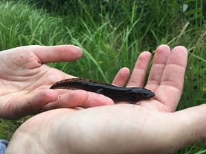 In the most recent bait trap sampling in CLT’s Ekar-Overhulse Preserve, we found Olympic mudminnows as well as Northwestern salamanders, rough-skinned newts, and assassin beetles.