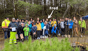 A lot of life, love, and accomplishments have happened since that day on the plane. Fred worked at the Washington Department of Transportation as a wetland biologist and stormwater scientist for over 20 years, and Debi worked at Sierra Pacific Timber Company in Centralia for 12 years. They both retired in the fall of 2018 and were looking for something meaningful to keep them busy when they became involved with Capitol Land Trust’s Trail Steward program.