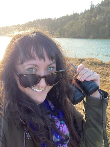 Growing up on the coast of Maine, Sarah has a lifelong love of the natural world. She holds an undergraduate degree in environmental science from the University of New England and a master’s in environmental studies from The Evergreen State College. Sarah has worked in the environmental field as an outdoor educator, middle and high school science teacher, and most recently as a habitat connectivity biologist. When she is not at work you can find her hiking in the Olympics with her husband, Lucas, and spending time with their cats, Hoot and Flicker, and dogs, Nootka Rose and Spruce.